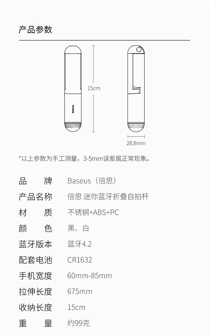 【倍思 • 迷你蓝牙折叠自拍杆】SUDYZP 数量
