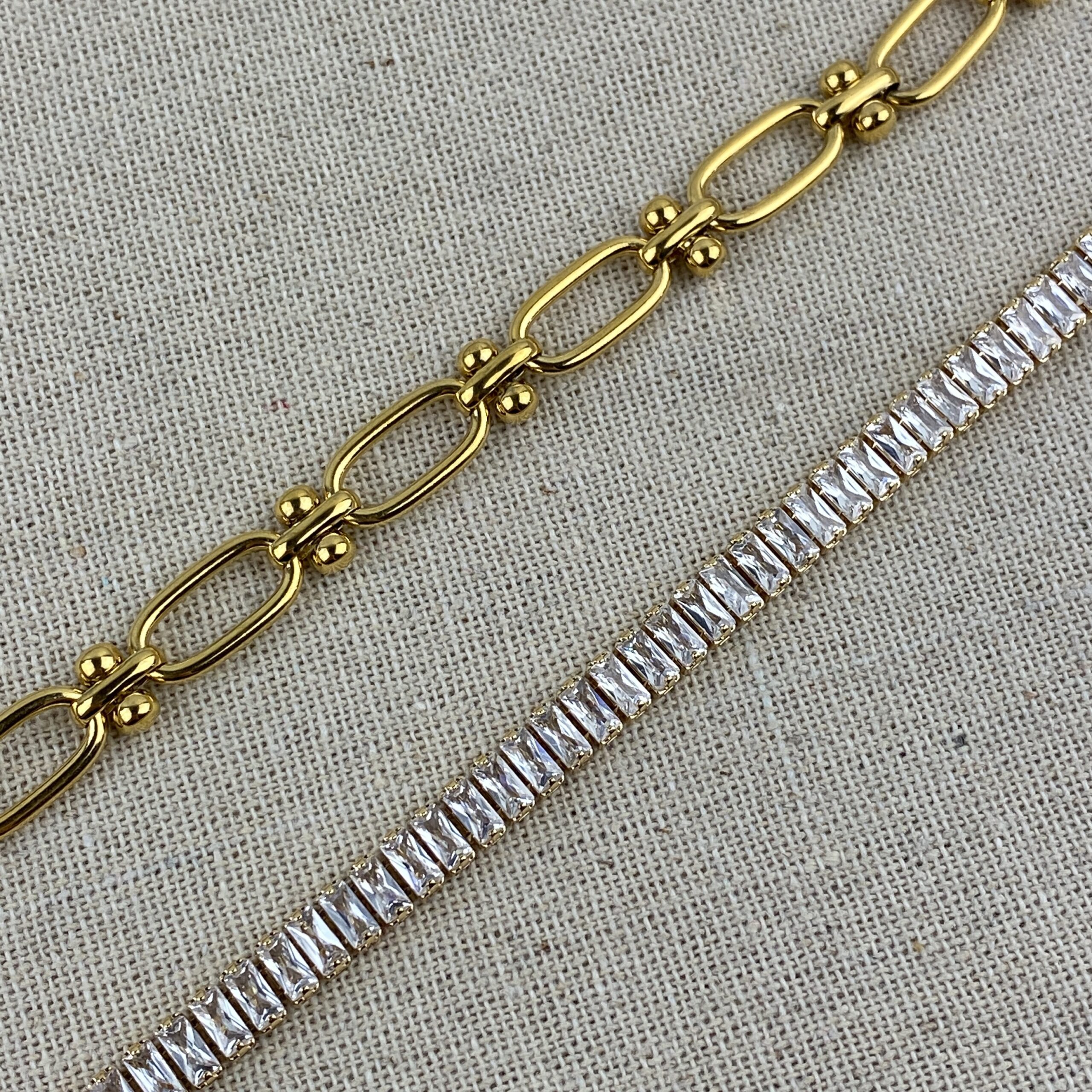 QM – Cross Lock Oval Link Lobster Claps Bracelet