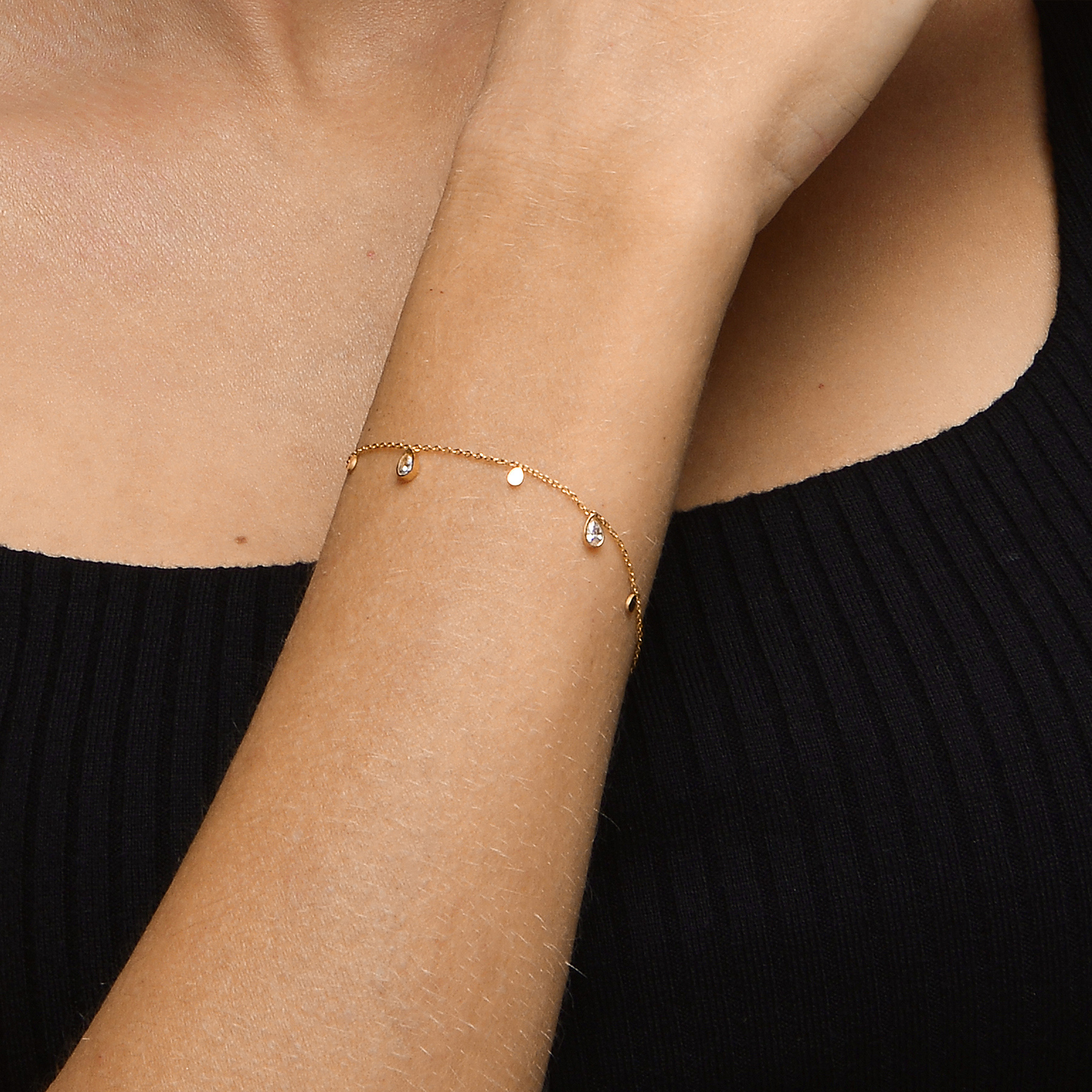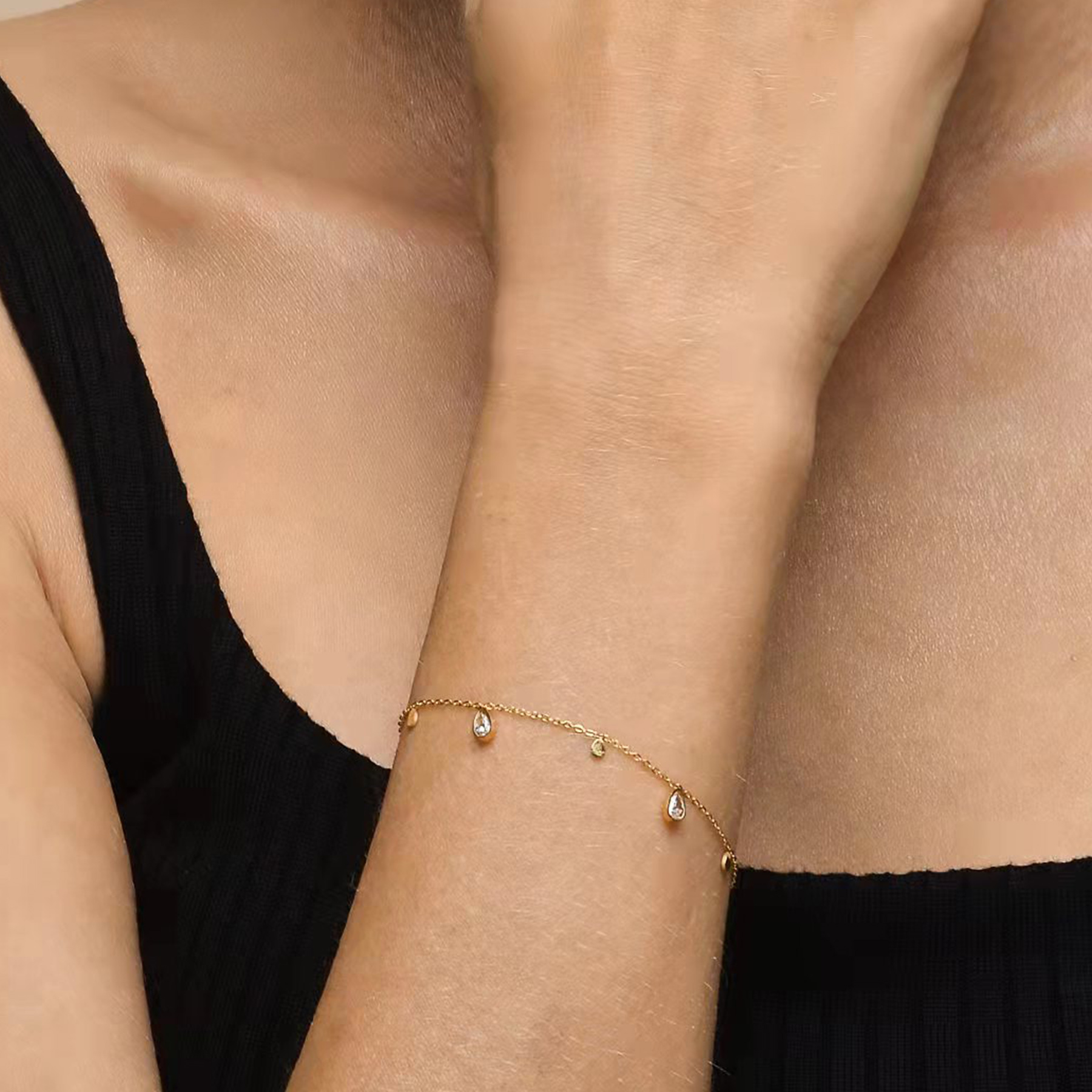 QM – Dainty Gold Bracelets for Women, 14K Gold Plated Cubic Zirconia Adjustable Bracelets
