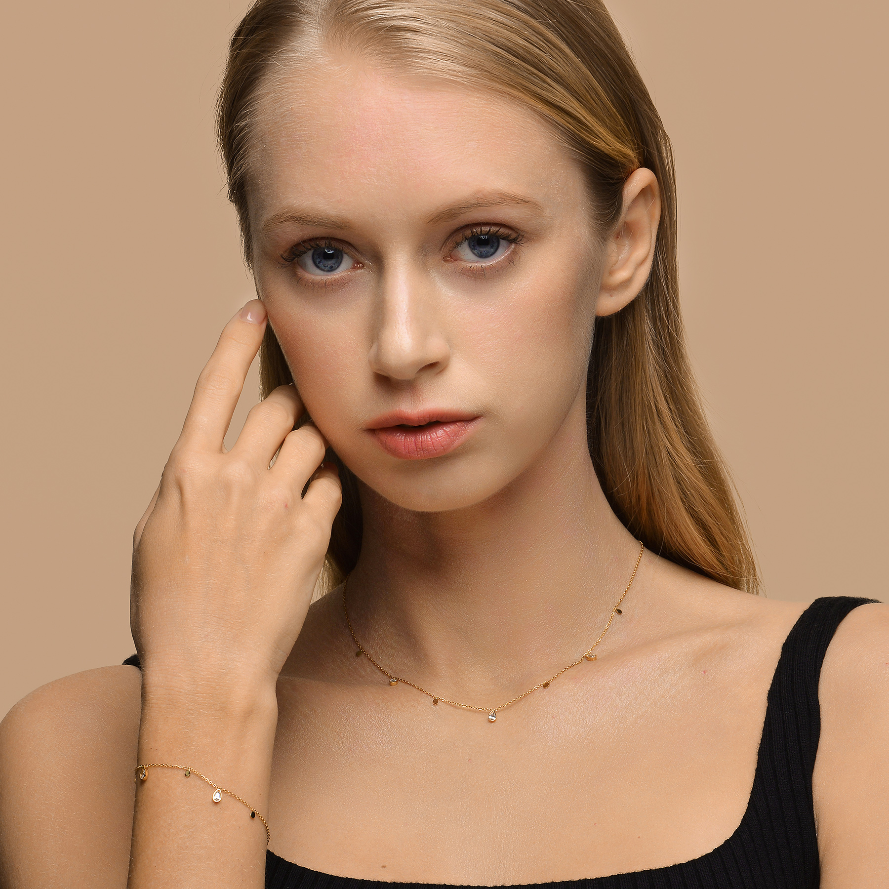 QM – Dainty Gold Bracelets for Women, 14K Gold Plated Cubic Zirconia Adjustable BraceletsEarrings With Peal Dainty Huggie Earrings