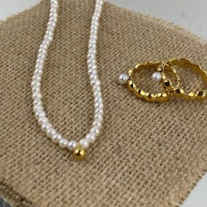 QM – Freshwater Pearl Necklace with Gold ORB Pendant