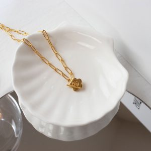 QM – Gold Chain Oval Link Necklace with Flower Toggle Clasp