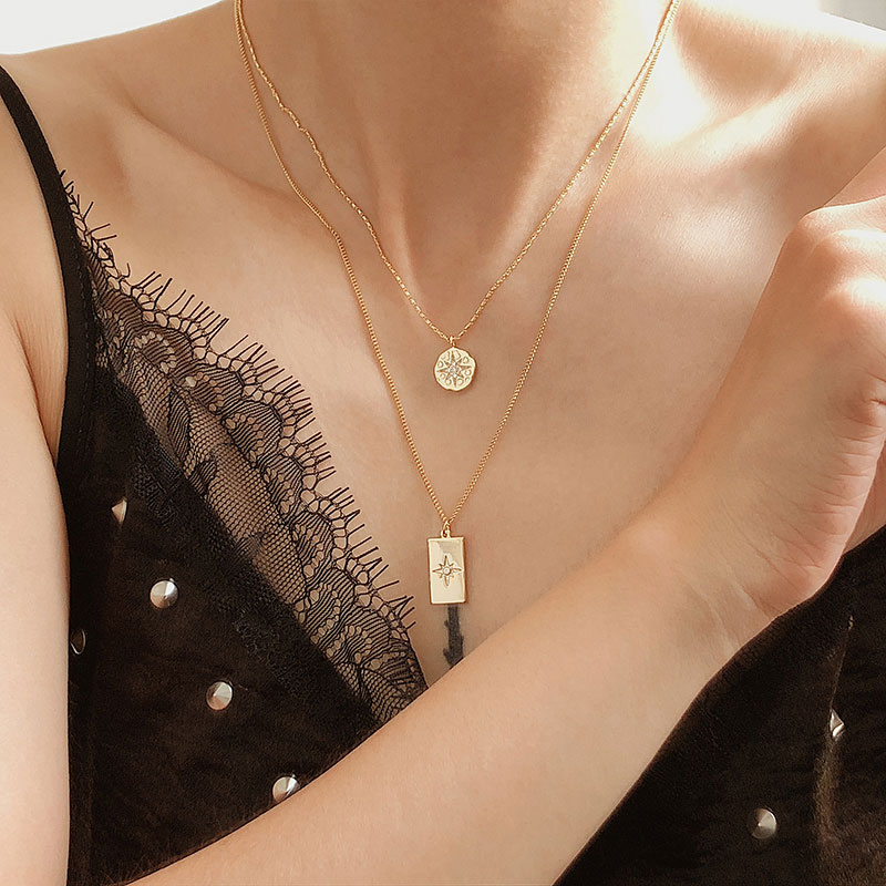 This Product: 【QM/ 八芒星镶钻圆牌项链锁骨链】